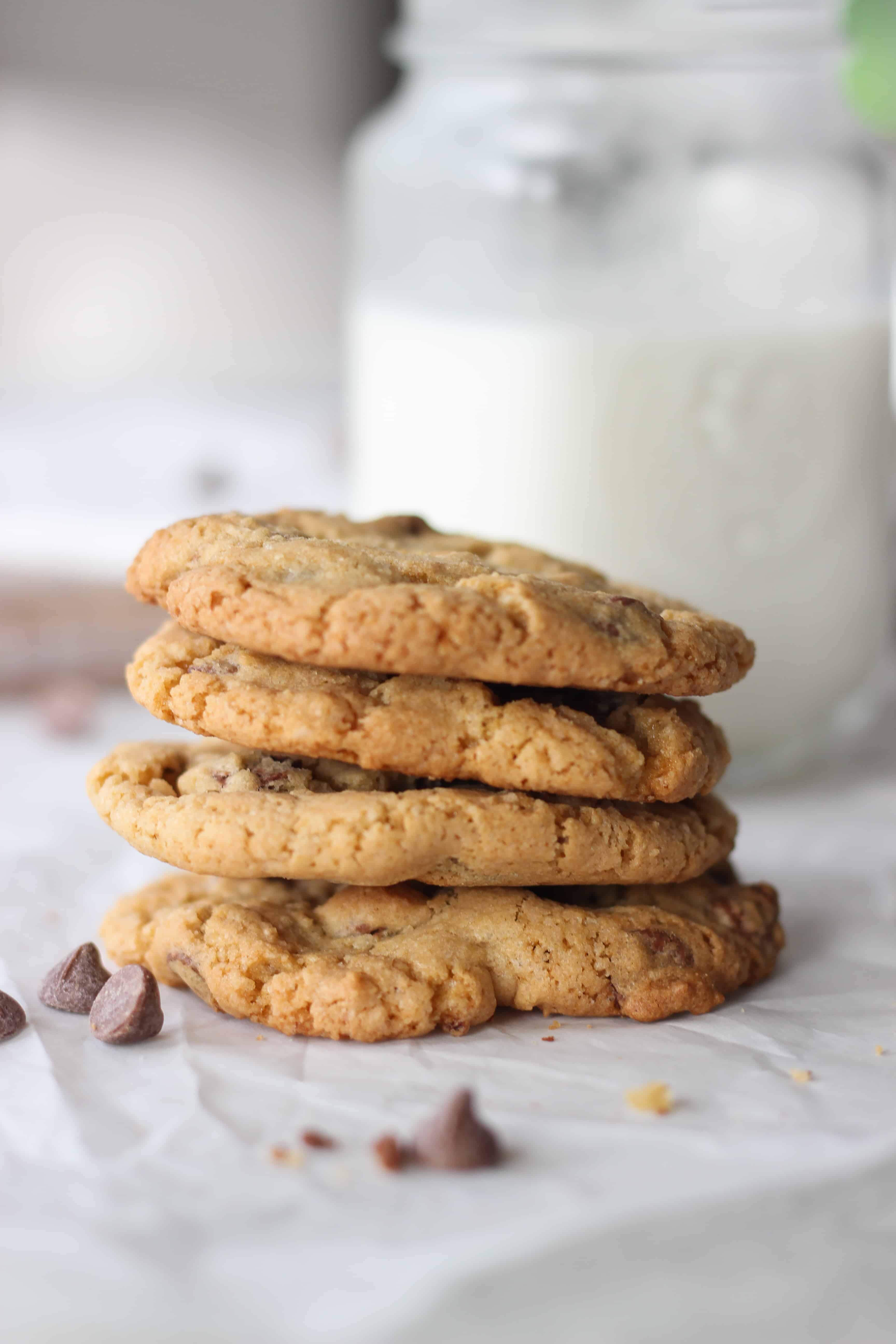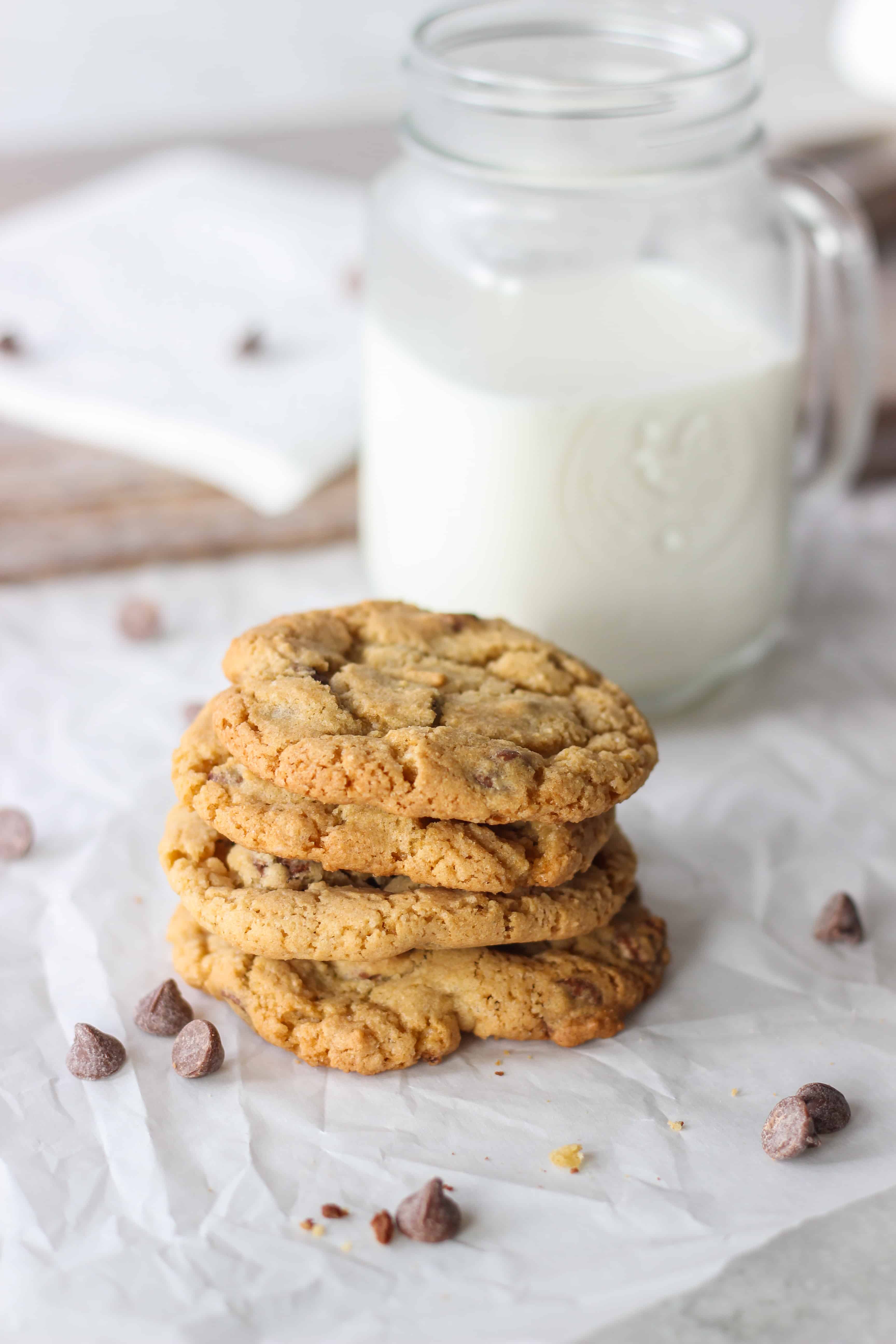 Keep these homemade chocolate chip cookies in an airtight container on your counter. They should last for a few days if stored correctly. But if they become a little stale, just dunk them in a big glass of milk — you won’t taste the difference, promise!