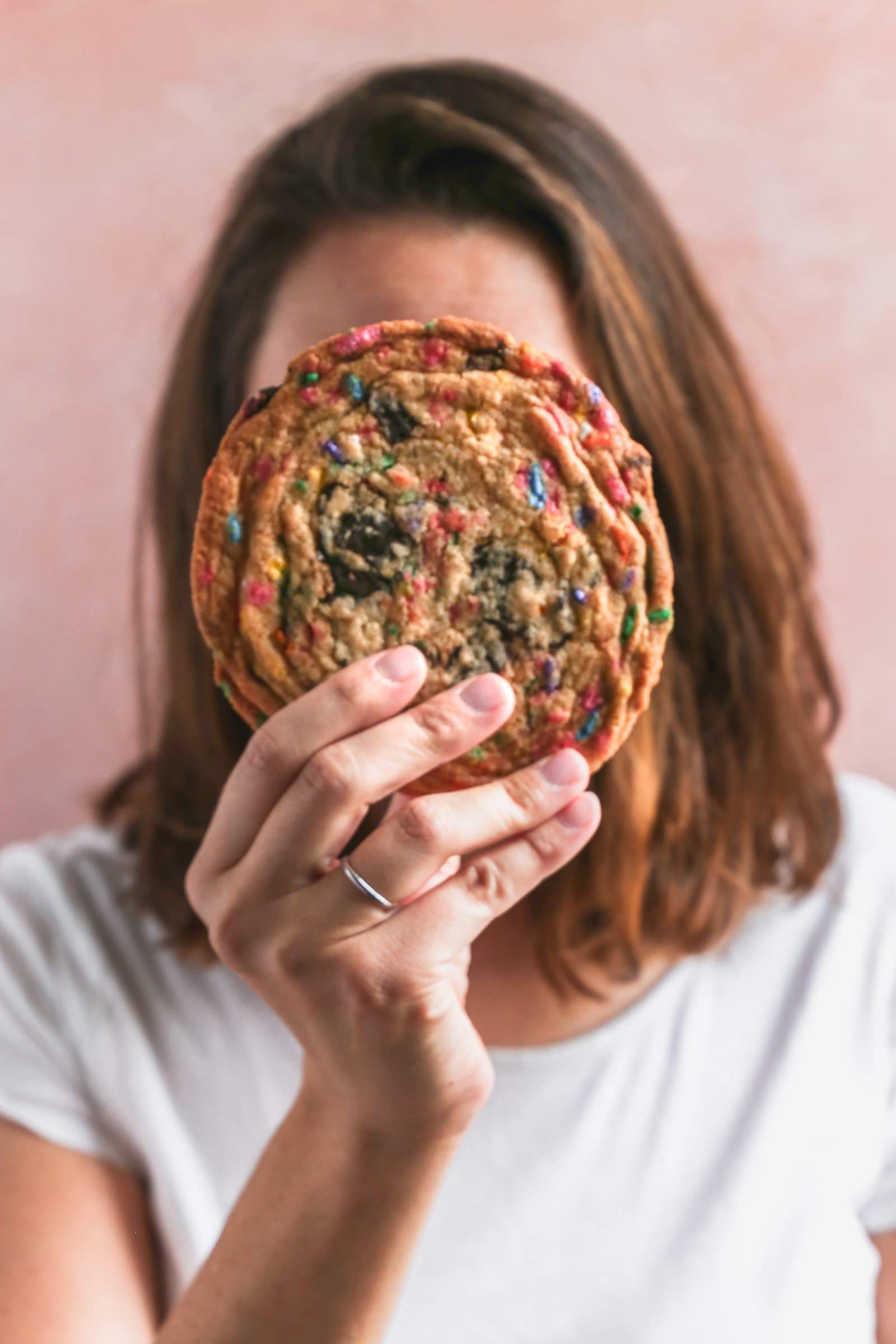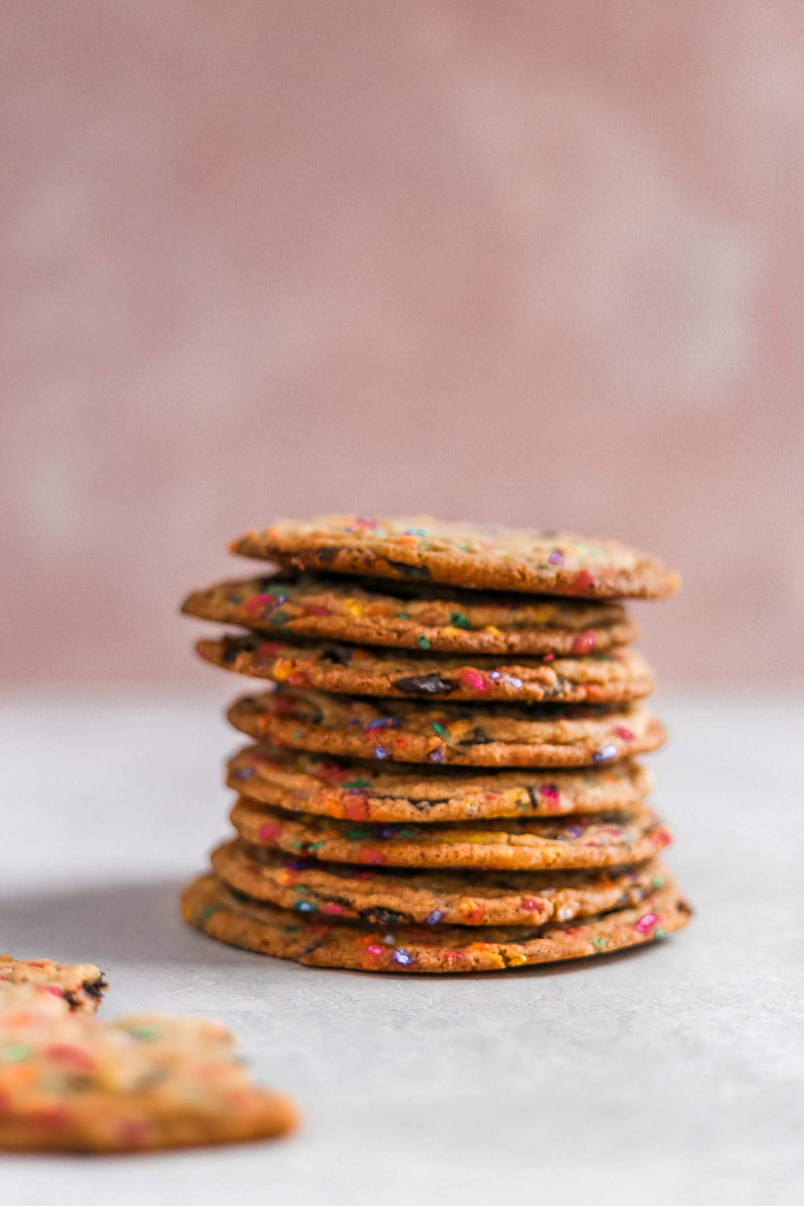 These are my boyfriends new favorite cookie! I love to try new recipes but he loves these so much he is requesting them weekly :). They’re perfect because they are a great mix of chocolate chip and funfetti. I do less chocolate chunks because I want more of the funfetti taste. They are also the perfect texture of crispy edge and chewy insides. I’ve done the bang technique before, but not quite this many “intervals” and these are just perfect. I read that another reader froze hers overnight and they came out flat. I ended up having to do that the second time I made these because my oven blew up in the middle of the first batch, so the second batch went in the next day. They definitely spread more, and came out flat. It also took longer and more bangs for me to get the center down to even. I think maybe if I had left them out for longer than I had before baking so the middle wasn’t so frozen? Not sure, and they were still delicious but I can definitely say they don’t come out flat when you follow the instructions to only freeze for 15 minutes! Make these, you won’t regret!