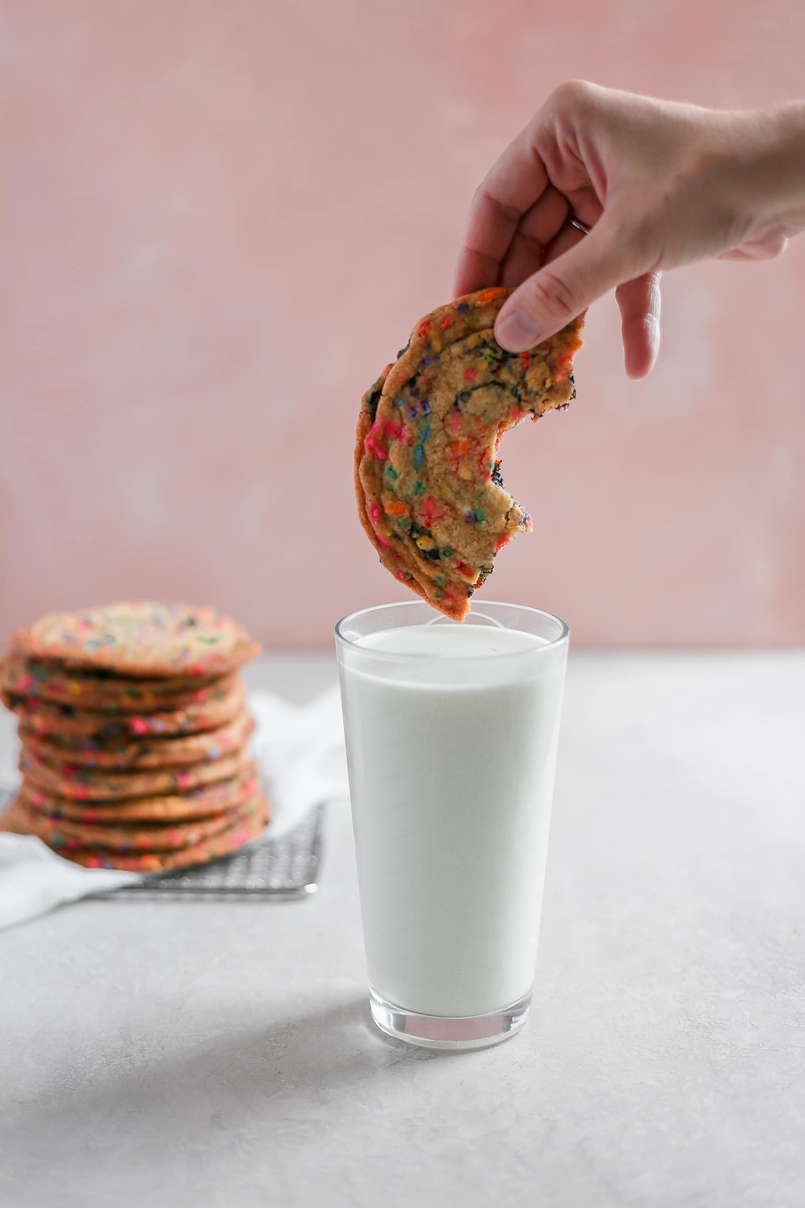 The list of cookie ingredients is actually super simple — don’t let the rainbow sprinkles fool you into thinking otherwise. I packed these chewy cookies with the usual suspects like: