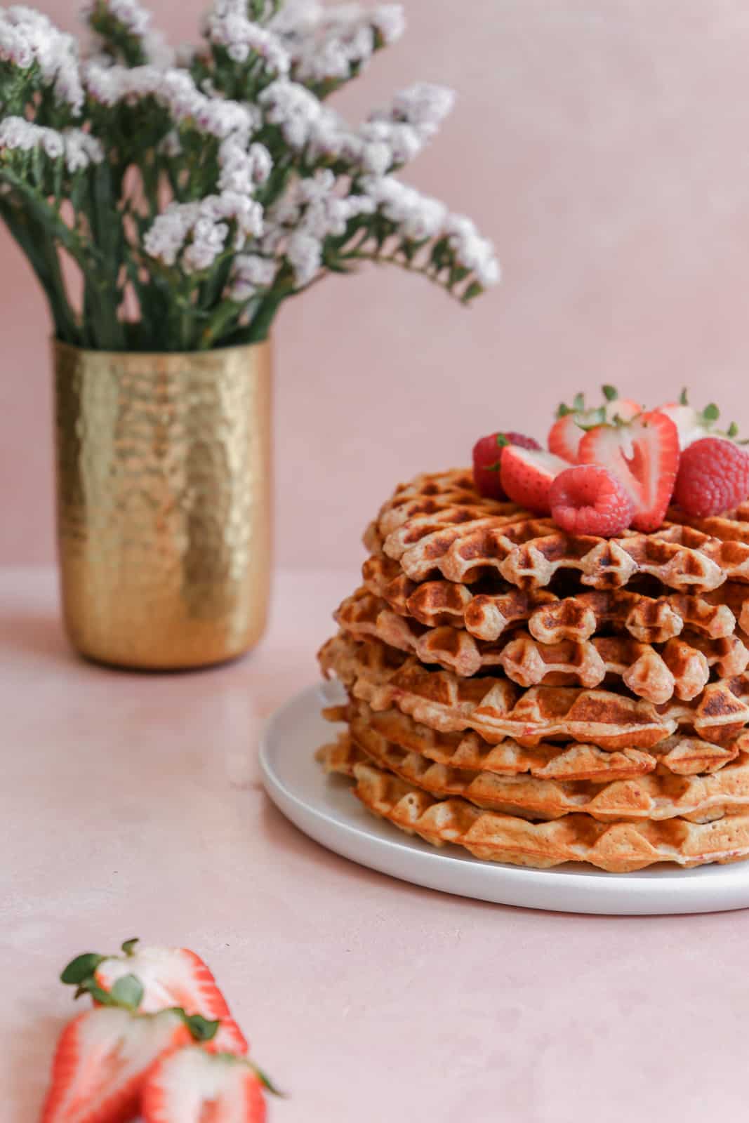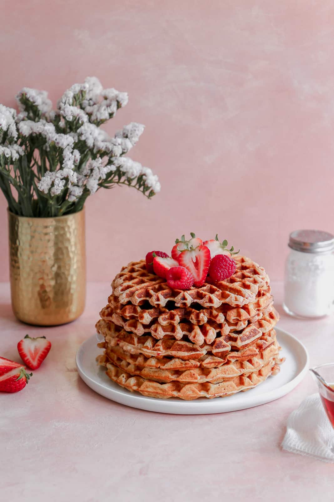 While testing these waffles I struggled on getting the consistency of crispy on the outside, chewy on the inside right- but Im happy to report that after testing 5 times (!!!) I got it.