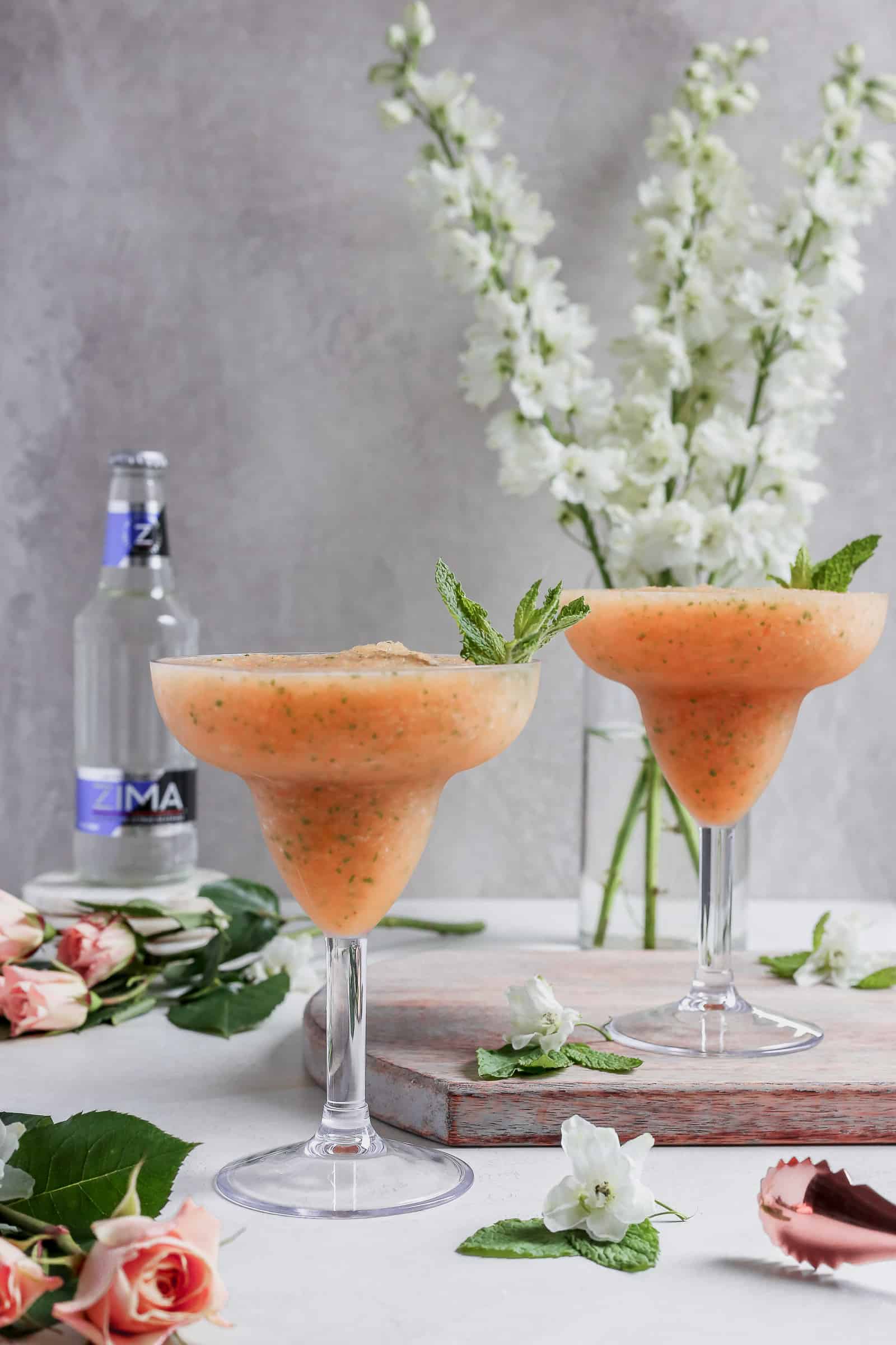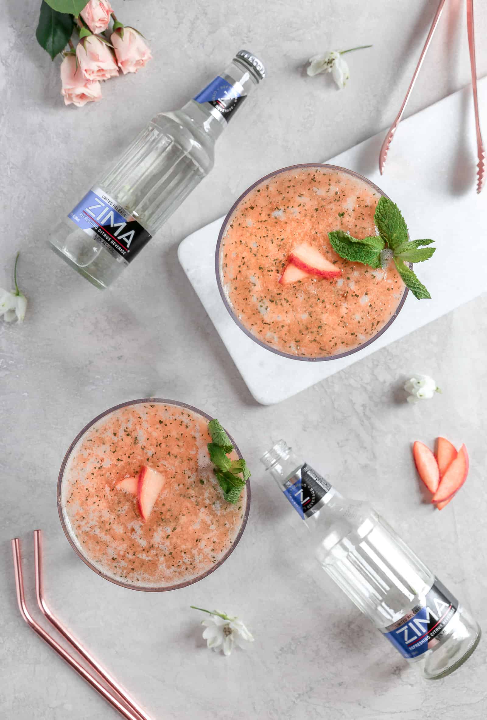 The sweet citrus flavor of Zima® blended with the classic flavor combination of peach and mint will be sure to keep you cool all summer long. So grab your girlfriends, break out the blender- and maybe some 90’s music- and get to it because I’m telling you this drink is allllllll that.