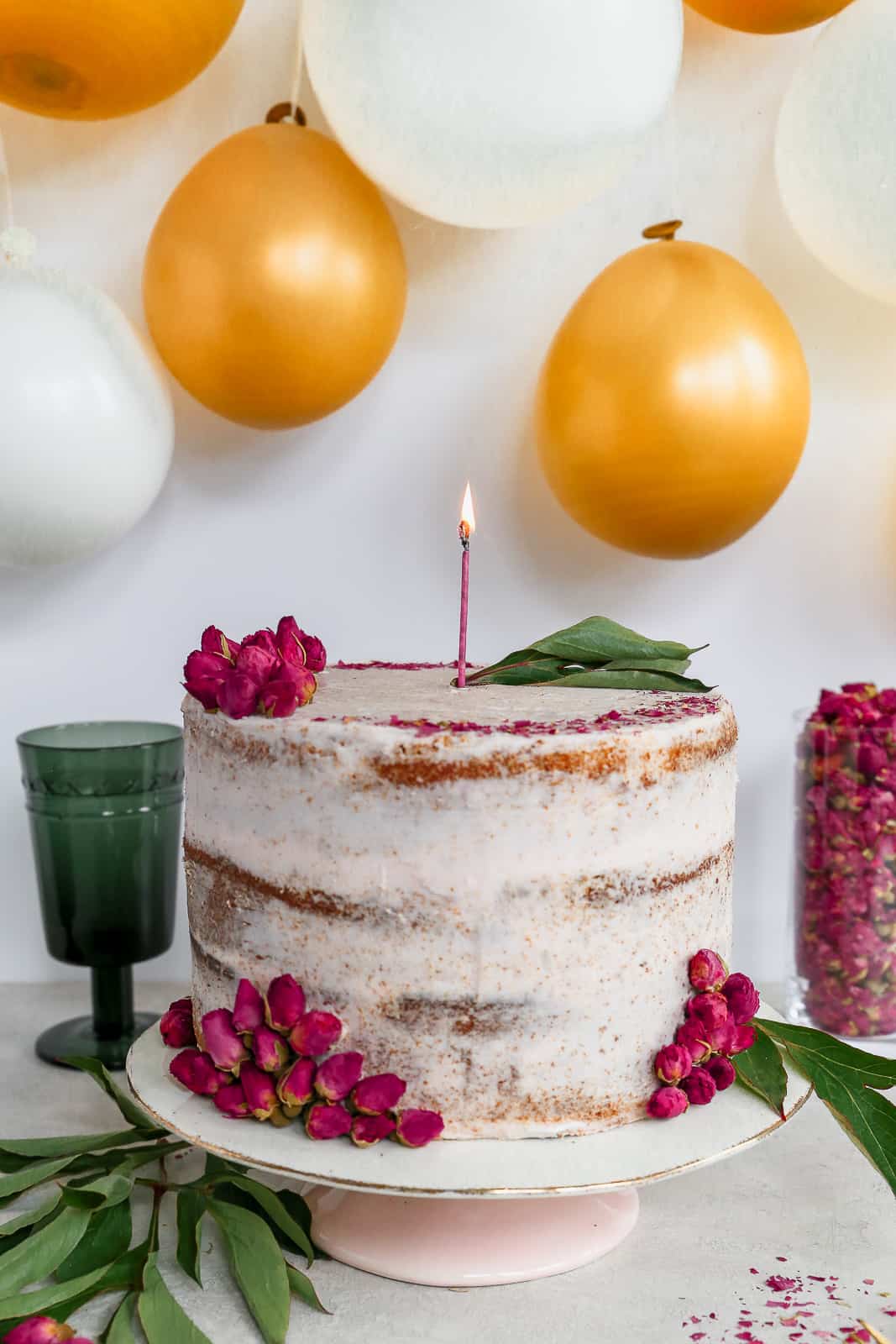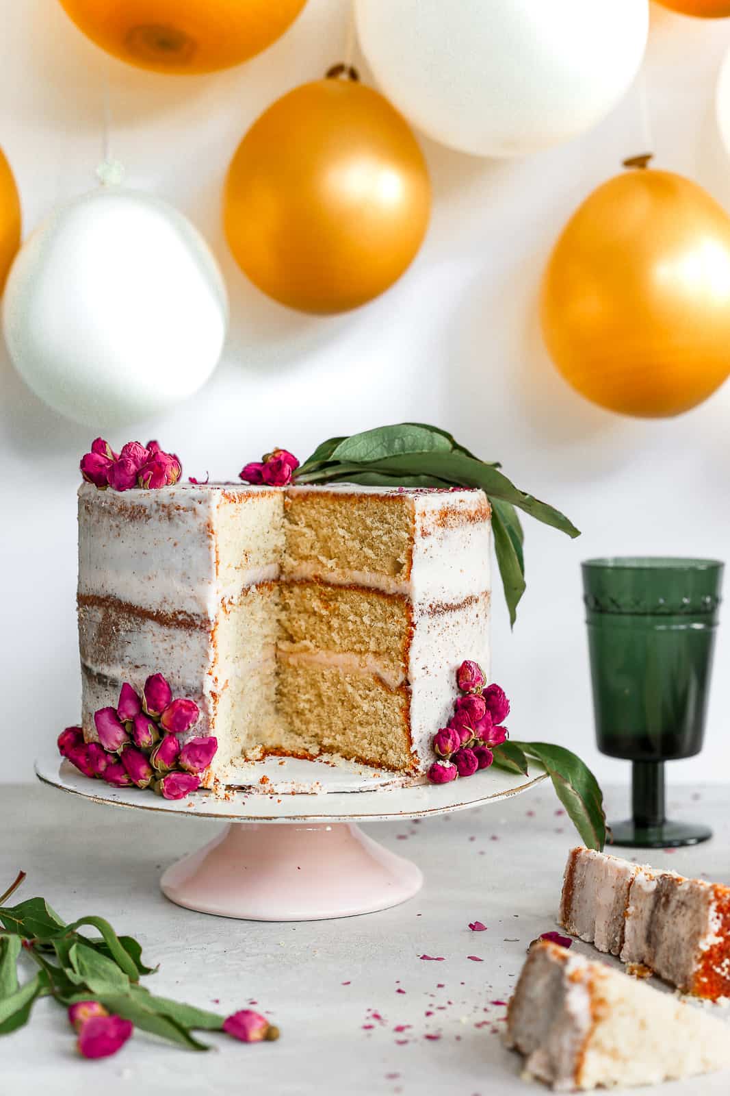 I enjoy baking new (and uniquely flavored) cakes every year for my birthday and this looks delicious, it’s definitely going on the short list for my options. Any advice for swapping the eggs, as I am vegan? I would also swap the butter and milk for plant based versions but I would imagine those wouldn’t effect the cake too much, unlike swapping 8 eggs. And where to find edible rosewater? Thank you