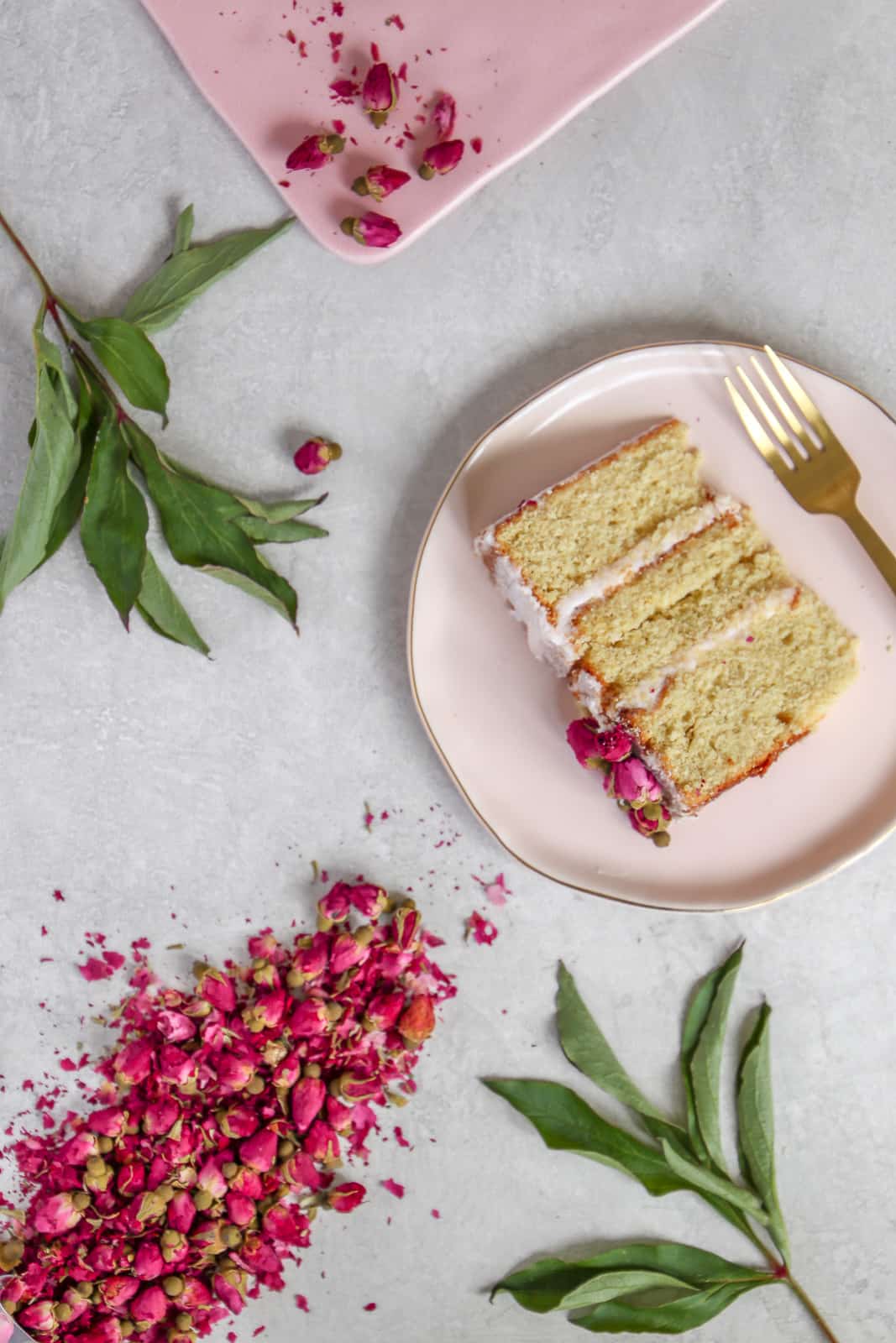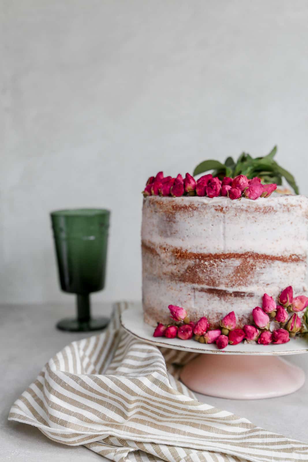 I’ve said this once, and I’ll say it again: do NOT add more rosewater than the recipe calls for! It’s powerful stuff, and it can quickly overpower the entire cake.